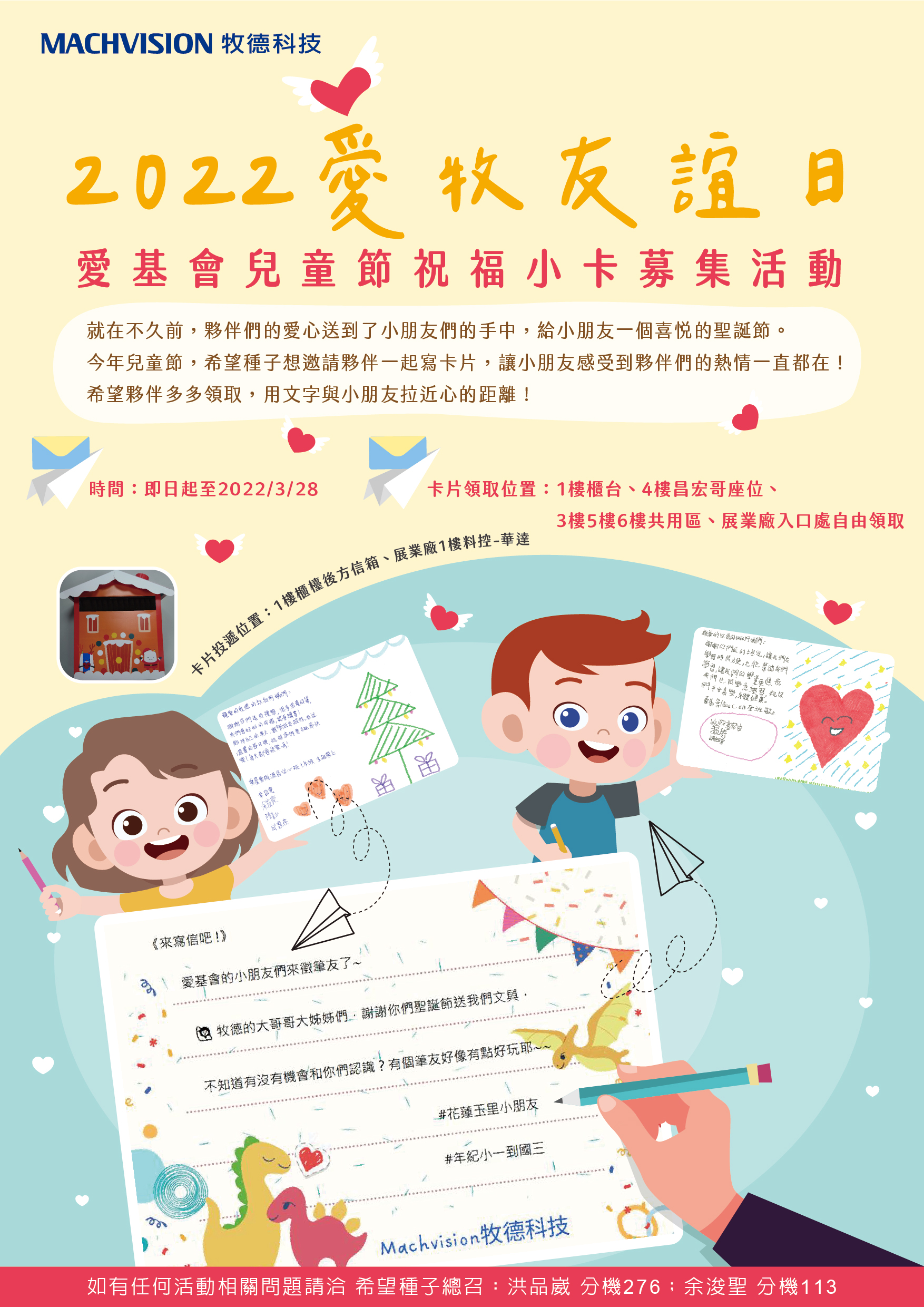 2022年牧德科技的公益社團『希望種子』,在今年四月兒童節前夕,與來自後山的夥伴-愛基會,發起『愛牧友誼日』的活動,號召了45位來自行政、產品研發、生產、業務客服、料控等部門的志工夥伴,期望延續了從去年底至今年初聖誕新年愛心募集的精神,讓我們化身為大孩子們,與這些在花東的孩子們互相傳情~