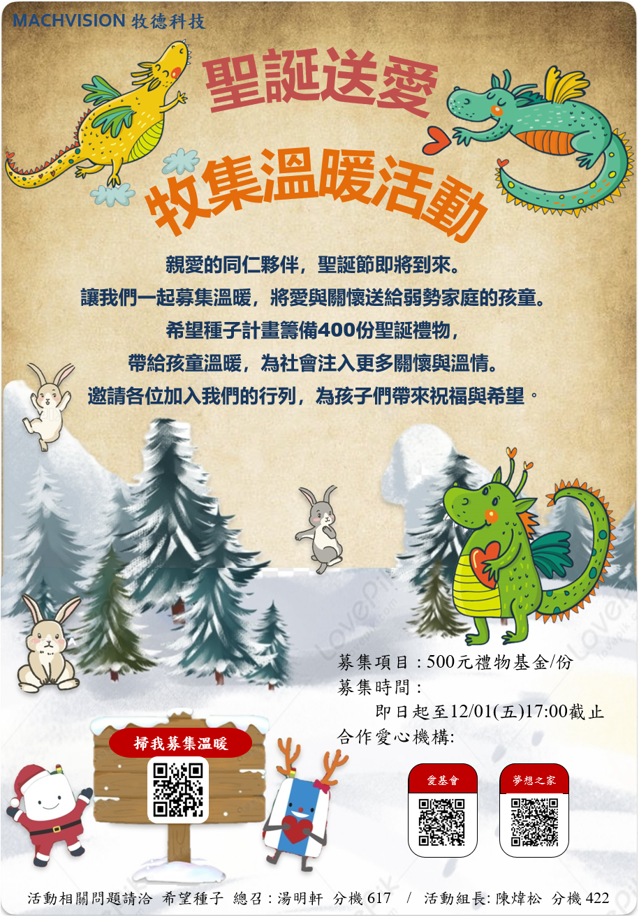牧德公益社團「希望種子」秉持著關懷、送暖的精神,配合愛基會、夢想之家舉辦聖誕新年愛心募集活動,